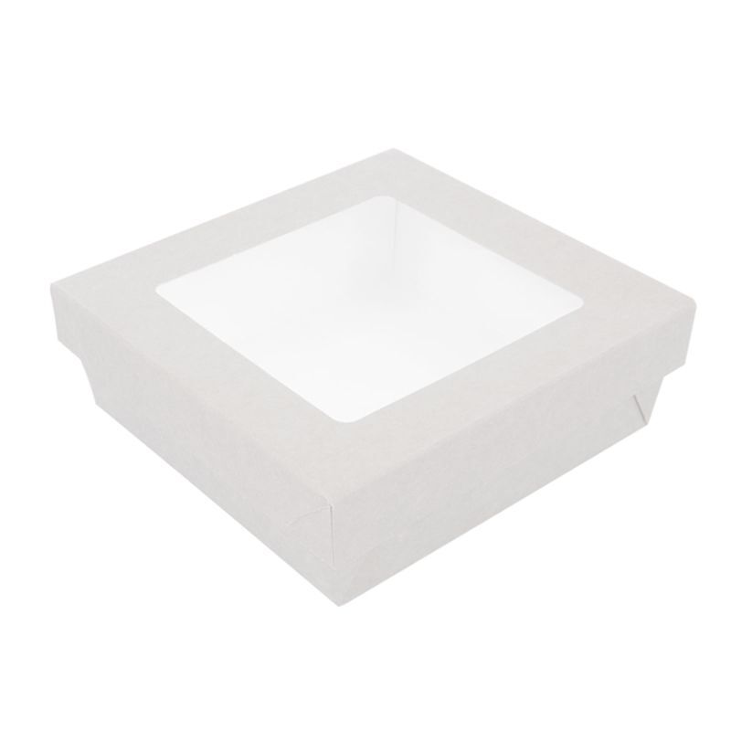 Купить Ланч-бокс с крышкой с окном бумажный 1000 мл, белый 18.5*18.5*5 см, (1упаковка= 50 шт) GP
